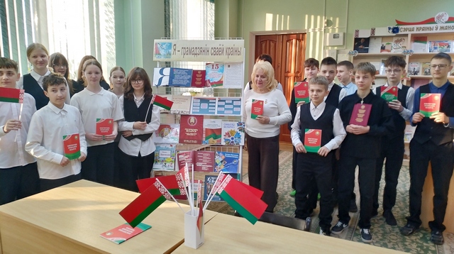 Ребят заинтересовал видеофильм «Конституция Республики Беларусь». Вниманию присутствующих была представлена тематическая выставка «Я – грамадзянін сваёй краіны».
