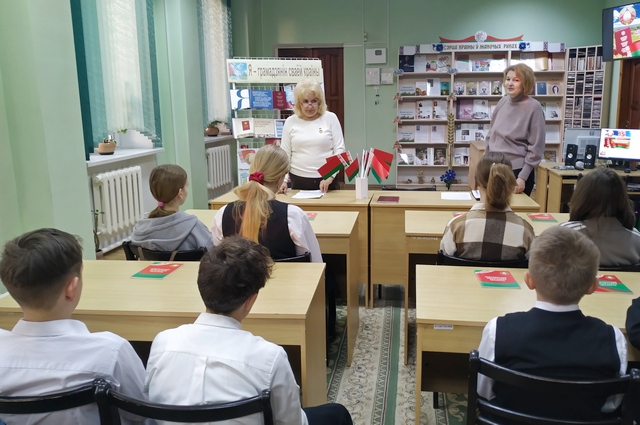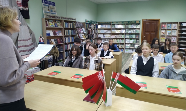 К Дню Конституции Республики Беларусь 12 марта в Свислочской районной библиотеке для участников любительского объединения «Юный патриот» прошел урок гражданственности «Конституция – высшая ценность государства» с участием председателя Свислочской районной организации ветеранов Е.В. Прокопик.