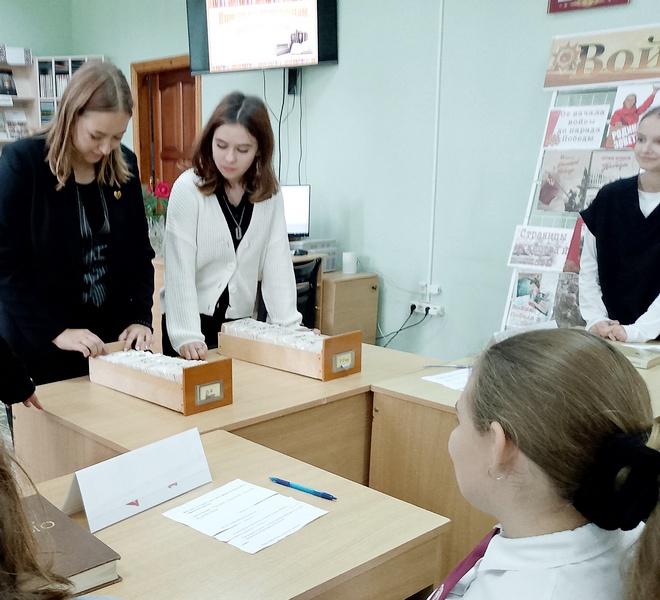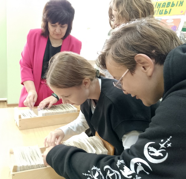 18 сентября Свислочская районная библиотека пригласила учащихся 9 класса гимназии №1 имени П.Василенко на библиографический КВН «Ключи к сокровищам библиотеки». В начале встречи библиограф познакомила ребят с понятиями «Библиография», «Алфавитный и систематический каталог», «Картотека», пояснила, что включает в себя информационное пространство библиотеки, как в нем ориентироваться.