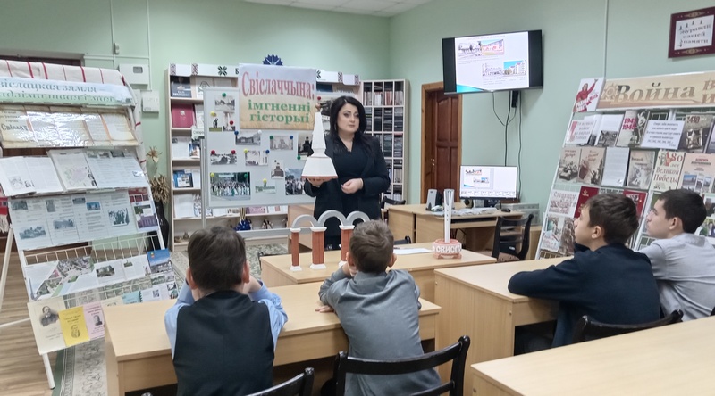 С помощью мультимедийной презентации «Свислоччина: судьба и Родина моя» присутствующие познакомились с историко-культурным наследием и достопримечательностями нашего края, вместе вспомнили основные значимые даты в развитии Свислочского района. Большой интерес у школьников вызвала фотоэкспозиция «Свіслаччына: імгненні гісторыі», где были представлены фотографии прошлого и настоящего времени. Ребята окунулись в прошлое, увидели то, что окружает нас сегодня, обсудили масштаб произошедших перемен.