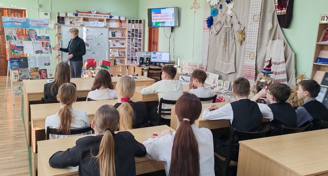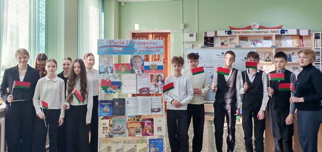 К Дню единения народов Беларуси и России 2 апреля в Свислочской районной библиотеке для участников любительского объединения «Юный патриот» прошел час истории «Беларусь и Россия: прошлое, настоящее, будущее». В начале мероприятия библиотекарь рассказала ребятам об истории единения двух народов, о подписании договора об образовании сообщества Беларуси и России, о создании Союзного государства Беларуси и России.