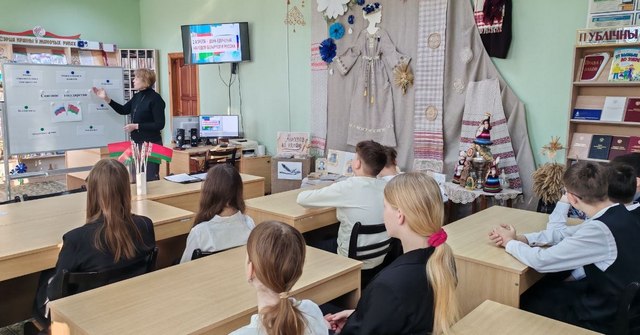 Вместе составили современный образ Союзного государства: общая история и ценности, безопасность, один язык, отсутствие границ, экономика и общее образовательное пространство. Заинтересовал ребят видеолекторий «Единством сильны» и видеоролик «День единения».