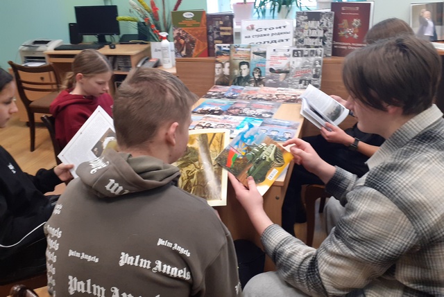 25 февраля в филиале «Великосельская библиотека» состоялся патриотический книжный марафон «Стоит на страже Родины солдат», посвященный Дню защитников Отечества и Вооруженных Сил Республики Беларусь. В начале встречи библиотекарь подчеркнула, что этот праздник, установленный Указом Президента Республики Беларусь № 157 от 26 марта 1998 года, по праву считается всенародным. Это день памяти мужества и героизма всех поколений защитников Отечества, которые отстояли независимость родной земли. И это повод вспомнить о людях мужественных, бесстрашных, сильных, уверенных в себе, умеющих любить и готовых встать в строй, чтобы защитить Родину и своих близких.  Именно о них рассказывается в изданиях, которые были предложены вниманию присутствующих. В ходе марафона, чтобы заинтересовать подростков чтением книг военной тематики, библиотекарь сделала обзор литературы, представленной на выставке «Стоит на страже Родины солдат». Особый интерес у ребят вызвали книги Б.Д.Долготовича, С.В.Кулика, И.Масленицыной из серии «История для школьников», посвященные нашим землякам – участникам Великой Отечественной войны. Библиотекарь презентовала присутствующим книгу «Профессия зенитчик» из серии «Маленький профессор», в которой рассказывается о том, как зарождались наши противовоздушные войска, кто такие зенитчики, как ими стать, какие качества важны для этой профессии.
