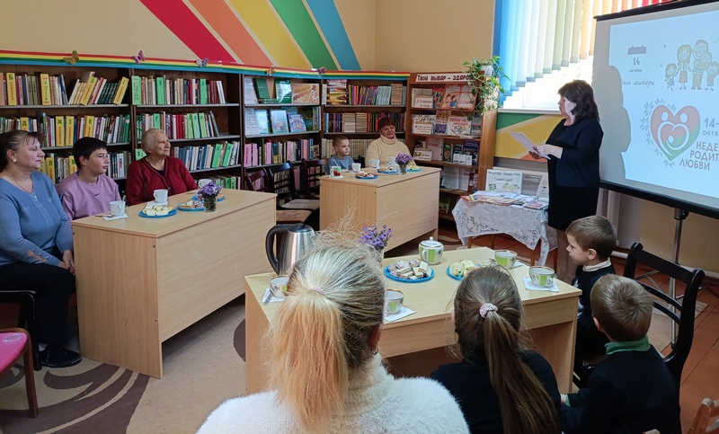 В начале мероприятия библиотекарь рассказала о связи двух замечательных праздников, отмечающихся 14 октября: праздника Покрова Пресвятой Богородицы и Дня матери, напомнила присутствующим о чудесном явлении Богородицы, накрывшей молящихся осажденного Константинополя белым покрывалом, защищая их от врагов.  Поэтому в нашей республике на государственном уровне принято решение – считать этот день – Днем матери. Во время мероприятия прозвучали поздравления с праздником, слова благодарности и пожелания.
