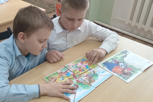 Ребята с удовольствием вспоминали произведения великих сказочников, активно участвовали в викторине «По следам сказок братьев Гримм», принимали участие в играх «Продолжи фразу», «Доскажи словечко», «Узнай сказку по опорным словам», собирали пазлы по сказкам.