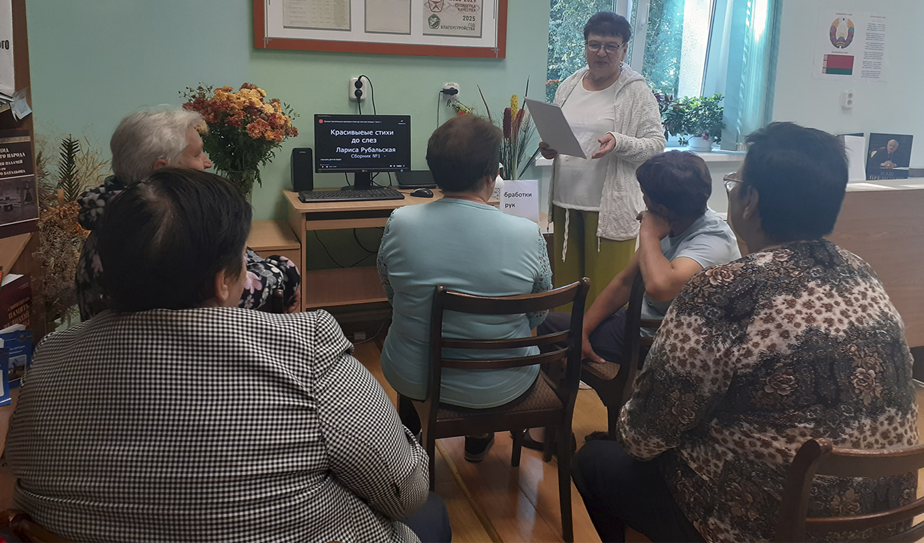Повествование сопровождалось показом фотографий, просмотром аудиозаписей стихов в исполнении автора, чтением произведений участниками встречи.