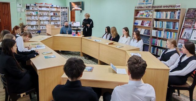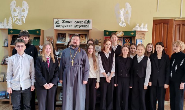 В рамках литературно-просветительского проекта «Святло і сіла духоўнага слова» 17 февраля в Свислочской районной библиотеке состоялась встреча-диалог «Служение слову и Отечеству». Гостем встречи стал настоятель храма Воздвижения Креста Господня города Свислочь иерей Дионисий Черняев. Разговор оказался не только содержательным, но и насыщенным впечатлениями. Учащиеся 11 класса гимназии №1 имени П.Василенко проявили живой интерес к обсуждаемым вопросам и активно дискутировали.