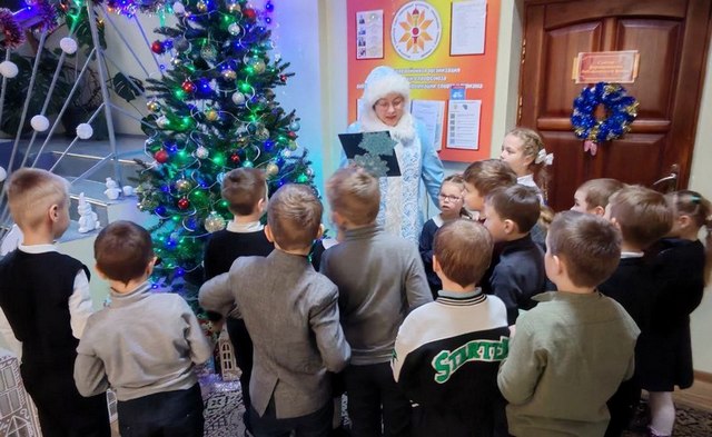 В Свислочской районной библиотеке продолжает работать новогодняя интерактивная площадка «Территория волшебства». 17 и 18 декабря для учащихся 1 классов свислочских школ была организована новогодняя развлекательная программа «В Новый год с улыбкой». Приняв участие в зимней игре «Бросай снежок!», мальчишки и девчонки получили входные новогодние билеты и  вместе со Снегурочкой отправились в снежную страну развлечений.