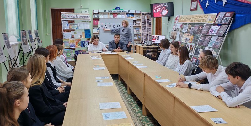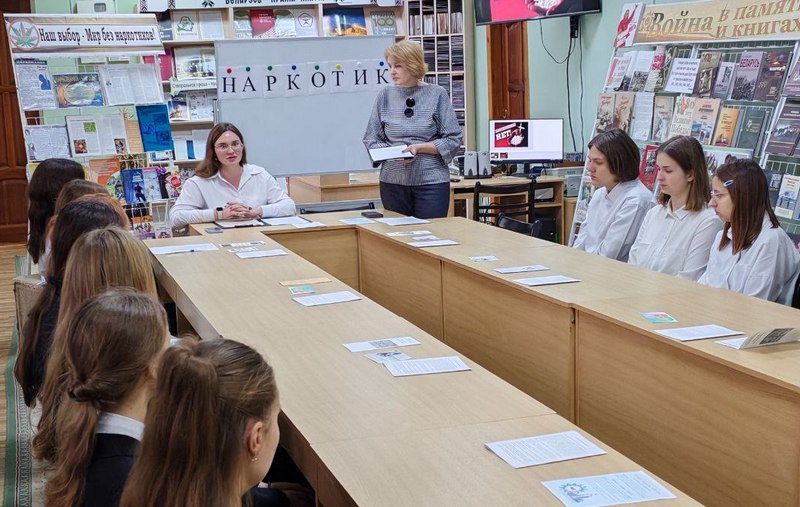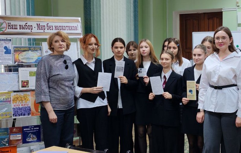 Библиотекарь обратила внимание присутствующих на тематическую выставку «Наш выбор – Мир без наркотиков!», вручила им памятки и буклеты «О вреде наркотиков», «Наркомания – путь в никуда», «У края бездны», «Наркотики и подросток», «Десять причин сказать «Нет» наркотикам». Для закрепления полученной информации ребята выполнили задание «Правда и неправда».