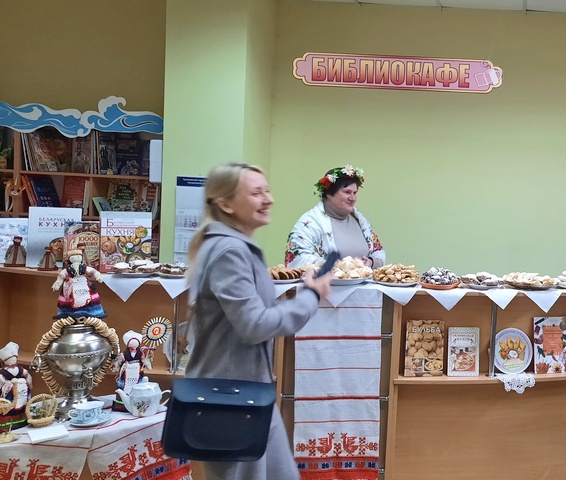 Огромной популярностью пользовались библиокафе «Белорусская кухня: хозяюшки рекомендуют» с разнообразной домашней выпечкой, фотозона «Для самой обаятельной…».