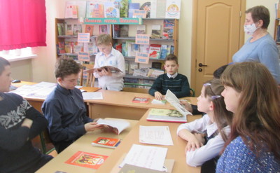 Для учащихся 5-7 классов была организована книжная выставка-предложение «Читайте книги о войне». Ознакомившись с литературными источниками, ребята делились своими впечатлениями от прочитанного. Во время встречи учащиеся читали понравившиеся им стихи, отрывки из рассказов и повестей военной тематики.