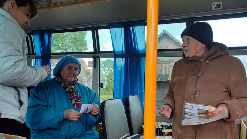 14 октября передвижная библиотека-библиобус Свислочской районной библиотеки по маршруту: Б.Михалки, Колоная, Нарковичи, Студеники организовала поздравительную акцию «Прекрасен мир любовью материнской».